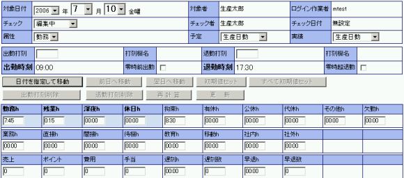 日報画面の「対象日付」を変更し、日付を移動しないまま再計算等の処理を行うと日報データが壊れる場合があります。